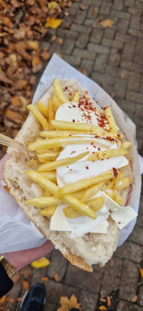 Pommes-Tasche, Knoblauchsoße, Feta (hatte die 2013 bei meiner letzten Reha auch, genauso wie in meiner Erinnerung)